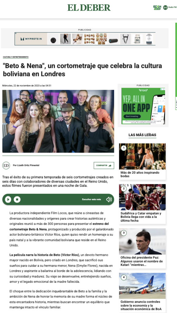 The film explores the life of Beto (played by Victor Rios), a devoted older brother born in Bolivia but raised in London, who sacrificed his dreams to care for his younger sister, Nena (portrayed by Emylie Flores), born in London and aspiring dancer at the cusp of adolescence, struggling with her curiosity and maturity. Their journey unfolds, interweaving dreams, love, and the emotional legacy of their mother’s passing. The clash between Beto’s unwavering dedication to family and Nena’s ambition to honor their mother’s memory forms the core of this enchanting story, as they seek to strike a balance that keeps their family bond intact.